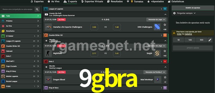 O 9gbra oferece uma grande seleção de opções de apostas em e-sports com probabilidades competitivas